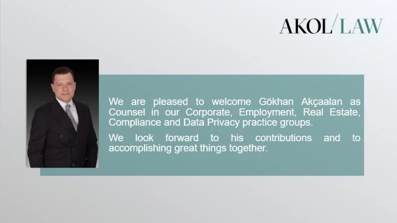We are delighted to welcome Gökhan Akçaalan as Counsel, particularly in our Corporate, Employment, Real Estate, Compliance, and Data Privacy practice groups.