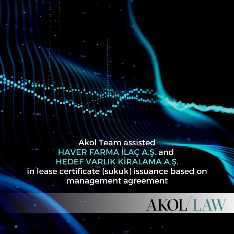 Akol Team assisted Haver Farma and Hedef Varlık Kiralama A.Ş. in lease certificate (sukuk) issuance based on management agreement.