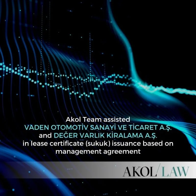 Akol Team assisted Vaden Otomotiv Sanayi ve Ticaret A.Ş. and Değer Varlık Kiralama A.Ş. in lease certificate (sukuk) issuance based on management agreement with an issuance limit of TRY 1,000,000,000.